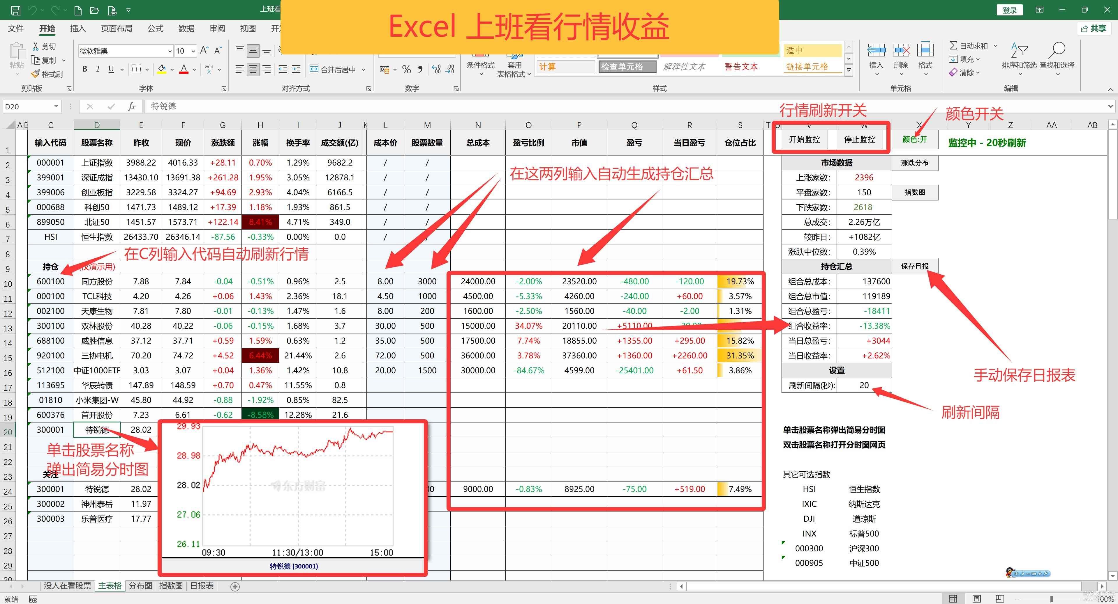 EXCEL上班看行情收益v2.3软件上班摸鱼