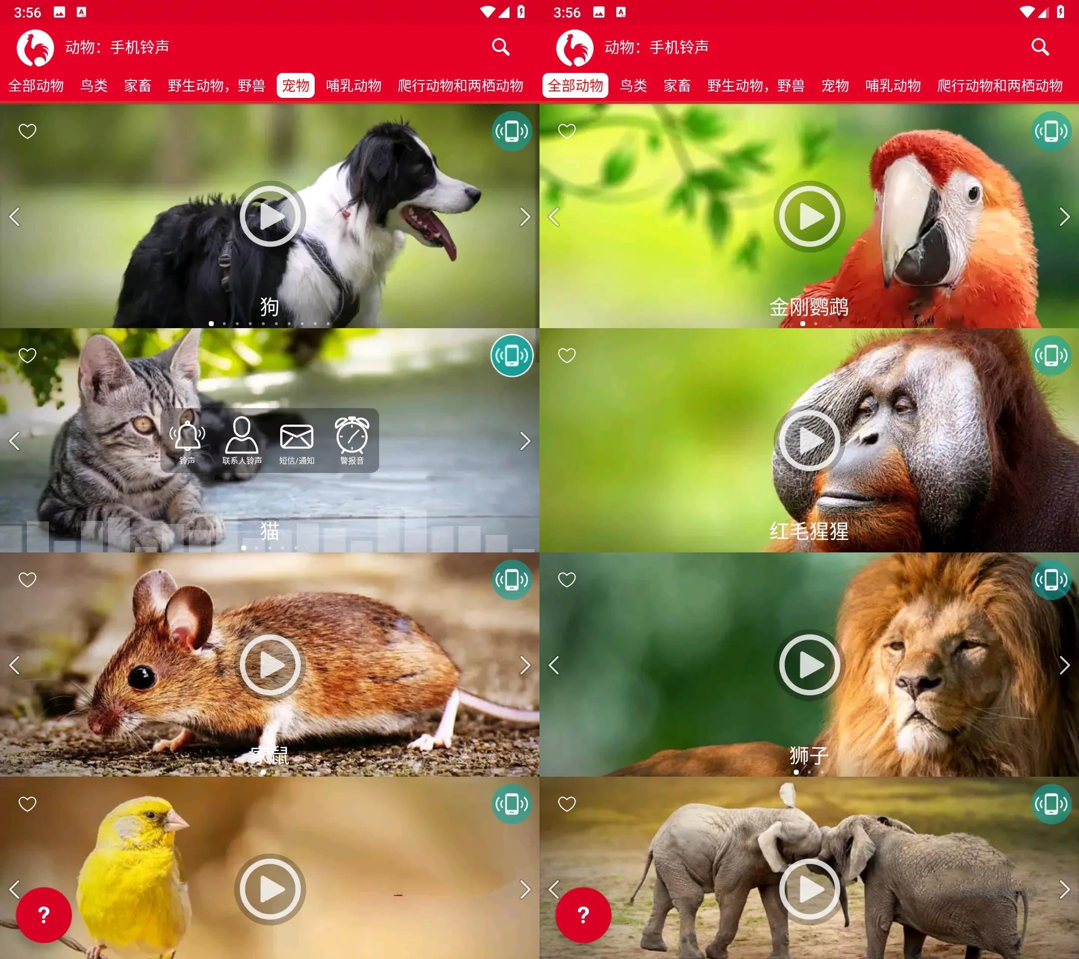 软件介绍 想要给你的手机增添一抹自然气息?动物铃声应用提供了一个绝佳的选择。这款应用含有190多种高清动物声音,任你挑选作为手机的铃声、通知声或者闹钟音效。无论是野外的狼嚎...