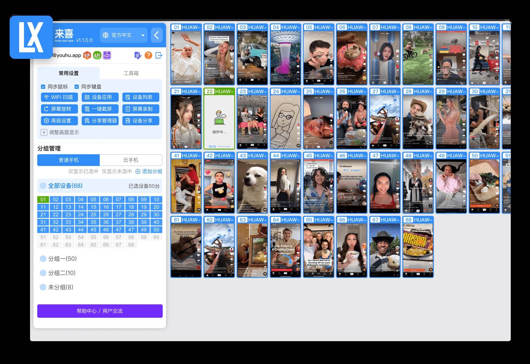 来喜投屏是一款专业级安卓群控软件,支持投屏批量控制、远程控制、自动化操作和话术等多项功能。它能帮助你高效管理多台设备,远程群控多个手机,并在多个设备上批量执行自动化任务,大幅提升多...