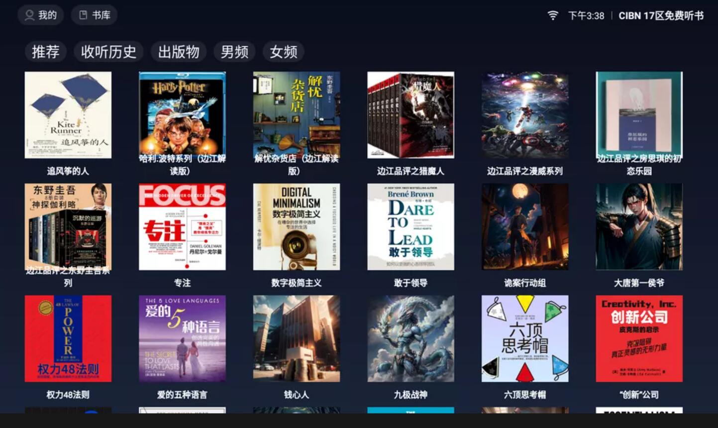 软件介绍 CIBN_17区免费听书TV是一款专注于在电视上提供免费听书服务的应用,其核心卖点在于为用户提供了完全免费的听书体验。这款软件聚集了丰富的有声书资源,涵盖了都市爽文、悬...